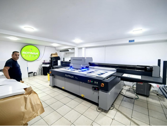 硬質材料印刷: 力宇UV平板打印機讓Rotinsa的業務邊界從柔軟的卷材擴展到堅硬的平板介質。無論是木材、玻璃、亞克力、金屬還是陶瓷,力宇設備都能提供附著力強、色彩鮮艷的打印效果,滿足了客戶對個性化裝飾、商業展示品的頂級需求。